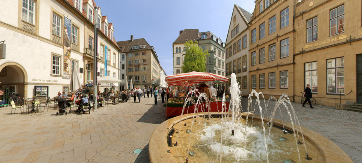 Bis 1904 hatte hier das Rathaus seinen Platz, heute lädt das „Theater am Alten Markt” zu sehenswerten Aufführungen ein. In einem der zahlreichen Cafés und Restaurants lässt sich bei einem Stadtbummel eine entspannte Pause einlegen. Einen besonderen Eindruck hinterlassen die liebevoll restaurierten historischen Fassaden und prächtigen Giebel, allen voran das Crüwell-Haus mit seinem spätgotischen Staffelgiebel von 1530. Sein Eingang in der kleinen Piggenstraße führt zu einem ganz besonderen Schatz: Rund 7000 Delfter Kacheln aus dem 16. bis 18. Jahrhundert erzählen im Treppenhaus von vergangenen Tagen.