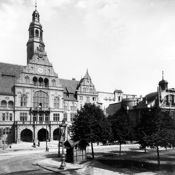Im Zweiten Weltkrieg blieb das Rathaus bis auf den Turm unzerstört. Maßgeblich von dem Stadtbaurat Ritscher geplant, ist der Baustil eine Rezeption romanischer, gotischer und Renaissance-zeitlicher Architektur.