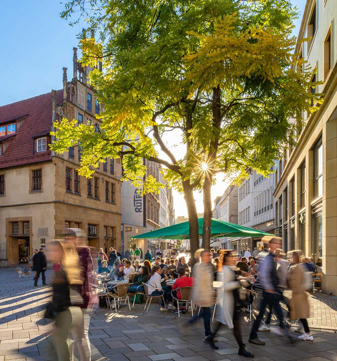 Wer Feiern und Shoppen verbinden möchte, ist rund um den Alten Markt genau richtig. Früher ein Ort des Leinenhandels – heute beliebter Platz zum Chillen und Feiern: Während der Open-Air-Saison wird der Alte Markt zum zentralen Treffpunkt. Ein Blick hinter die Fassaden der alten Patrizier-Häuser lohnt sich: 7000 Delfter Kacheln erzählen im Flur des Crüwell-Hauses ein interessantes Stück Stadtgeschichte….