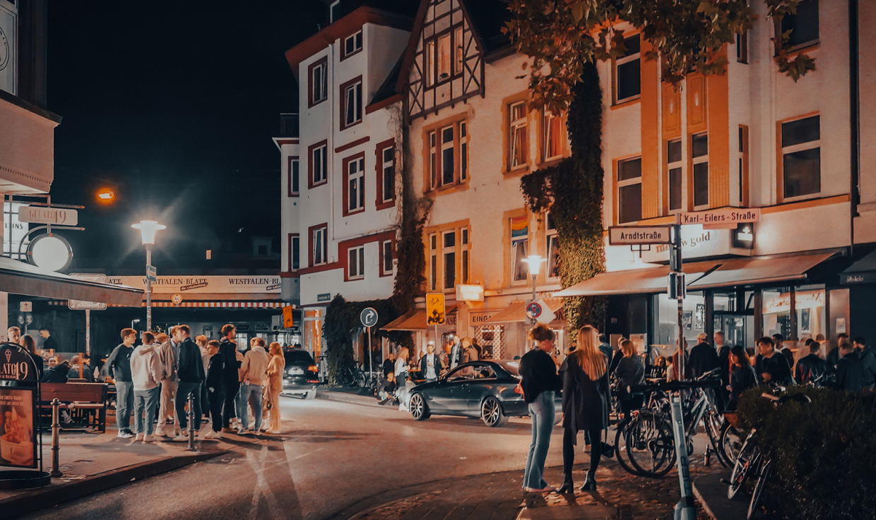 Vom ersten Frühstücks-Café bis zum letzten Cocktail: Der Emil-Gross-Platz hat sich zu einem der beliebtesten Treffpunkte in der City entwickelt und ist mittlerweile Kult. Unter Insidern auch "das Bielefelder Bermuda-Dreieck" genannt, trifft man dort Kneipe an Kneipe an.