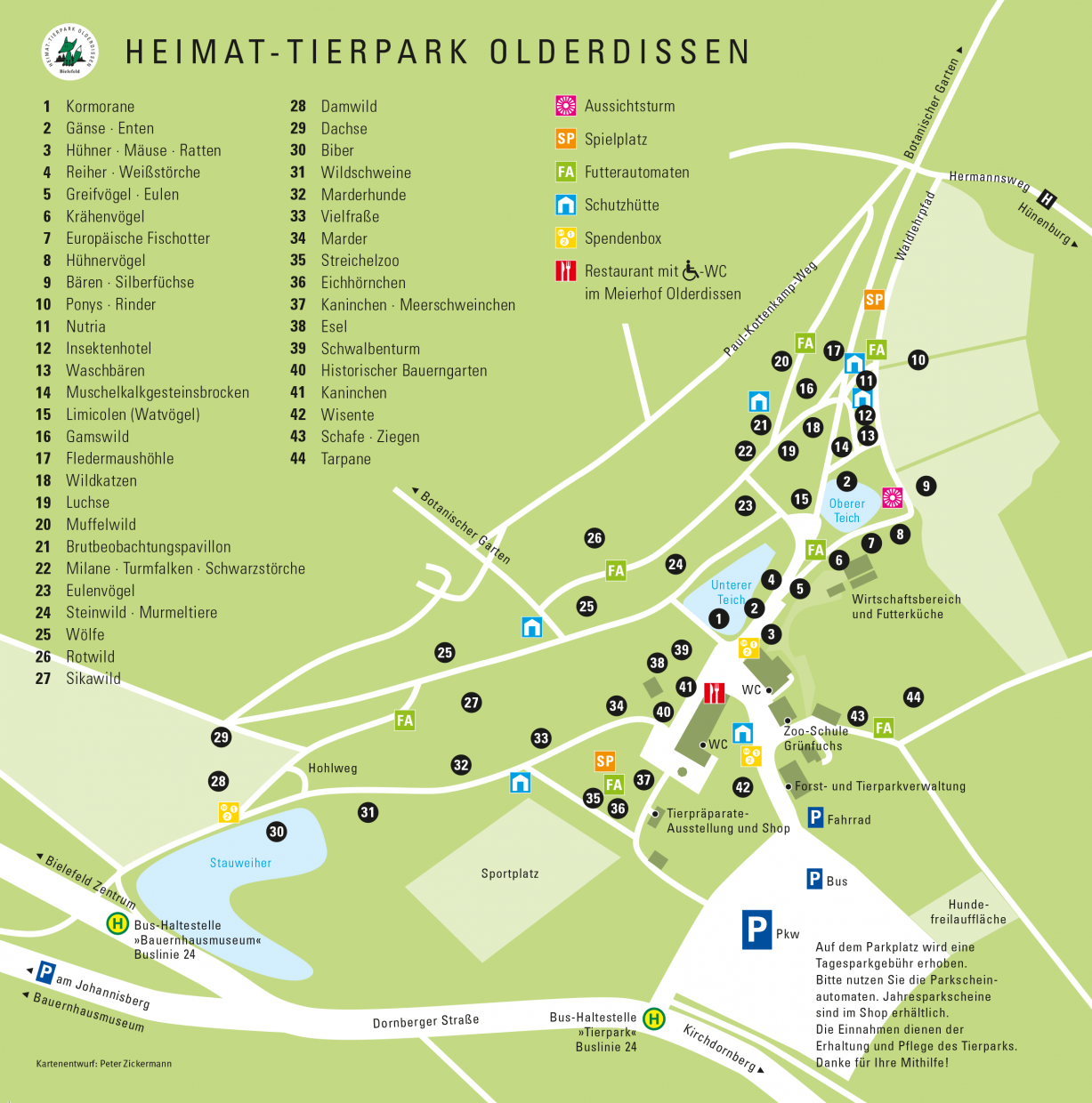 Ganzjährig geöffnet und eintrittfrei: Über 450 heimische Tiere machen Olderdissen zum beliebten Ausflugsziel für Familien mit Kindern. Vom Handelsblatt wurde der Heimat-Tierpark Olderdissen sogar unter die TOP TEN der deutschen Zoos gewählt. Der Park existiert bereits seit 1930, liegt mitten im Teutoburger Wald und ist etwa 16 Hektar groß.